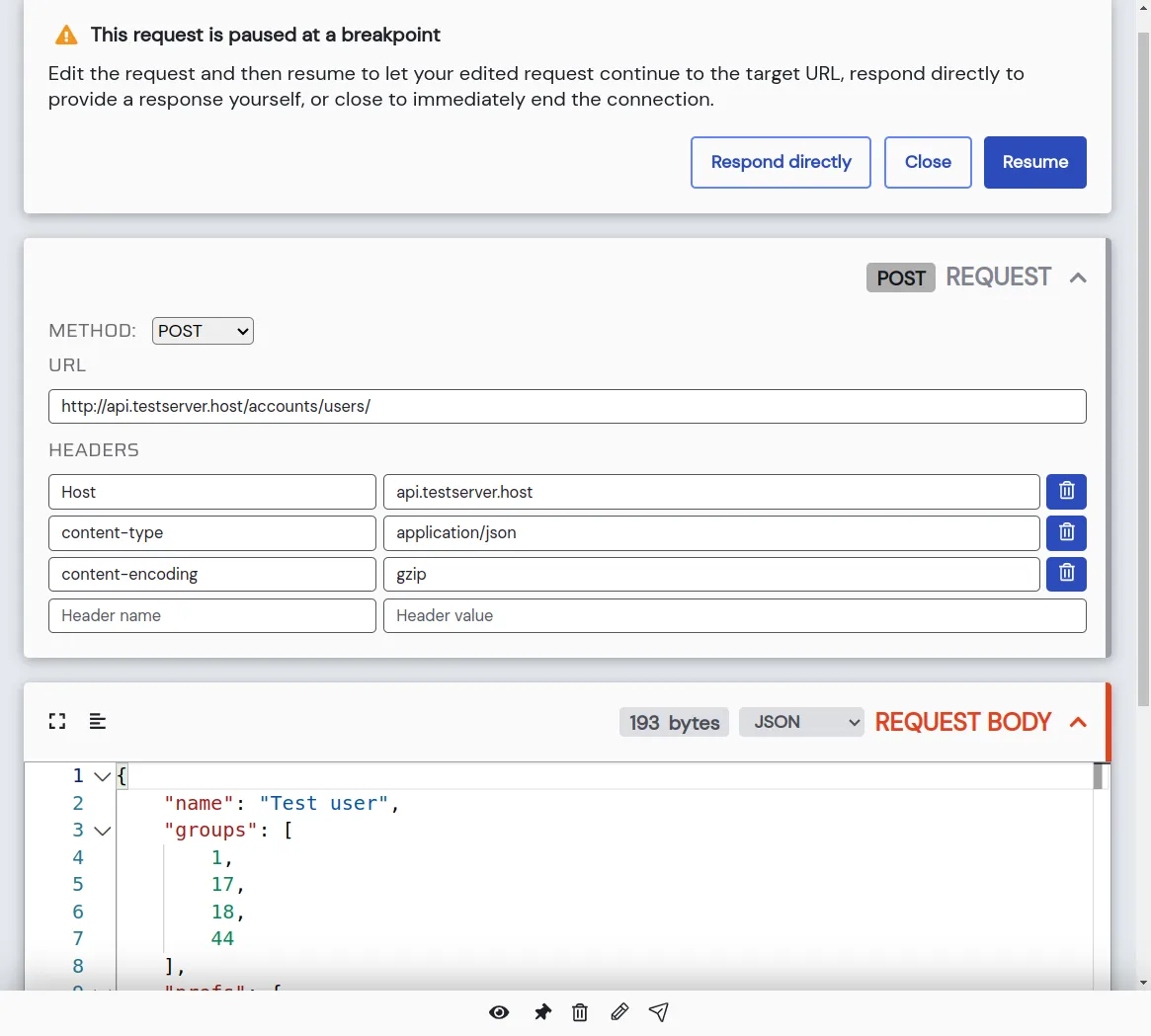 Use breakpoints to pause in-flight HTTP traffic for manual editing.